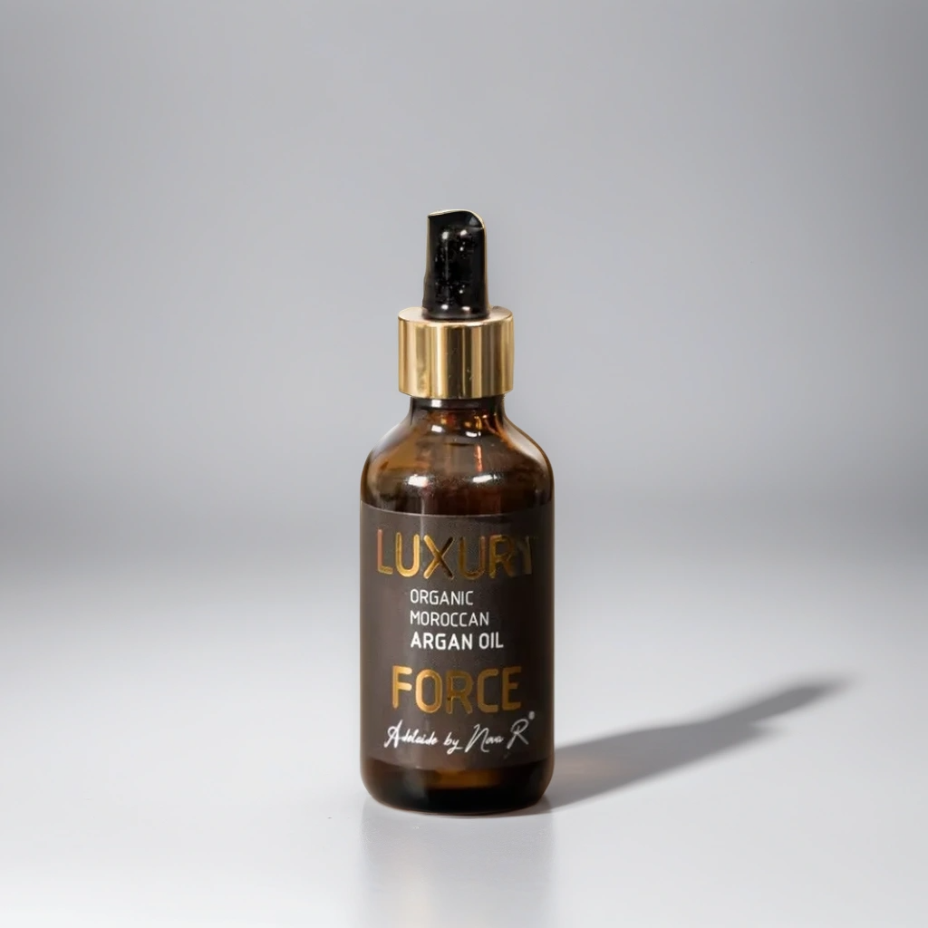 Vår ekologiska Marockansk Arganolja FORCE är kallpressad. Force är ett franskt ord för styrka. Oljan tar hand om dina toppar och gör ditt hår starkare och glansigare. Det är ett sant koncentrat av vitaminer och antioxidanter, vilket är nyttigt för ditt hår. Arganolja ger näring till håret och skyddar det från alla yttre aggressioner. Ursprung: Marocko